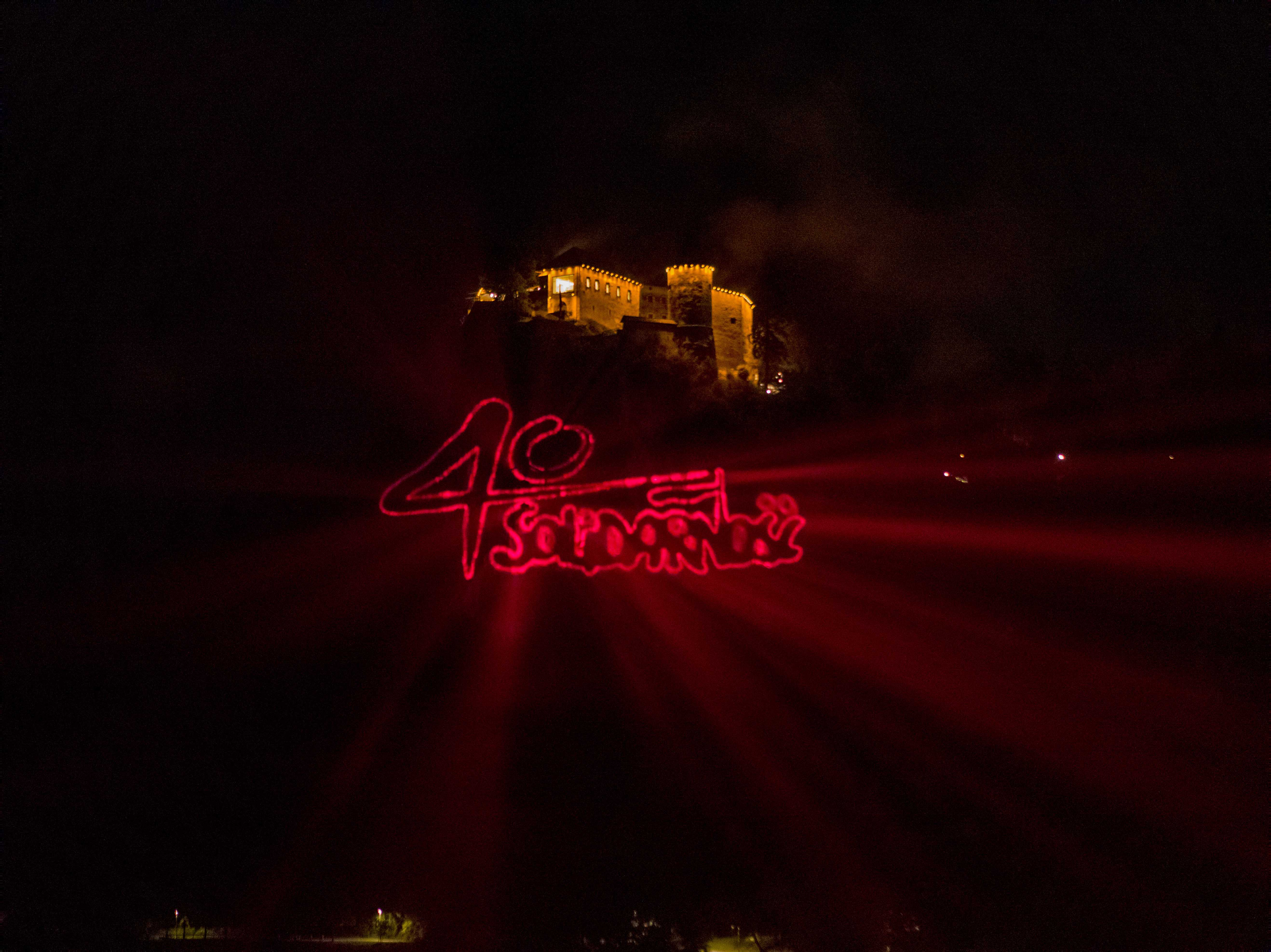 Logo ’40 SOLIDARITY‘ bolo projektované na skalu z približne 500m vzdialenosti ponad Bledské jazerá. Boli na to použité 4x KVANT Spectrum 30W z LD série – pre najlepší výsledok pri projekcii na veľké vzdialenosti.