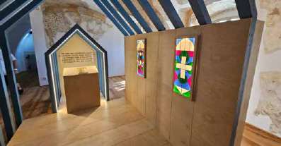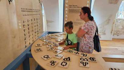 At the beginning, a relatively detailed project plan was drawn up, specifying the exhibits, furniture equipment and necessary technology. The content part was created together with our contract expert, and then with experts from the Institute of Archaeology of the Academy of Sciences in Brno. Over time, we created an interactive map of Great Moravia, wrote down lesser-known facts about Great Moravia, filmed footage of Mikulčice and Kopčany using a drone, and made 3D models of historical artefacts. We collected information about the mentioned sites, which accompanied us in spoken word in the created 360° videos. We also learned how to read Glagolitic script, studied the production of stained glass and analysed the conversation between Rastislav and Svätopluk.