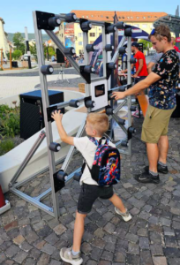 Na námestí pred nákupným centrom Vivo sme rozložili mimoriadne atraktívny stánok pútajúci nezvyčajnú pozornosť. Okrem termokamier a nového hasičského vybavenia sme priniesli aj novinku z našej dielne – interaktívne postrehové trenažéry. Na trenažéroch si prítomní hasiči, ale aj bežní návštevníci či okoloidúci mohli vyskúšať svoje reakcie pri súťaži v počte stlačených tlačidiel alebo pri reflexnom chytaní náhodne padajúcich kolíkov na zem. Za prekonávanie rekordov v chytaní kolíkov sme chytačov odmeňovali naším lahodným vínom.