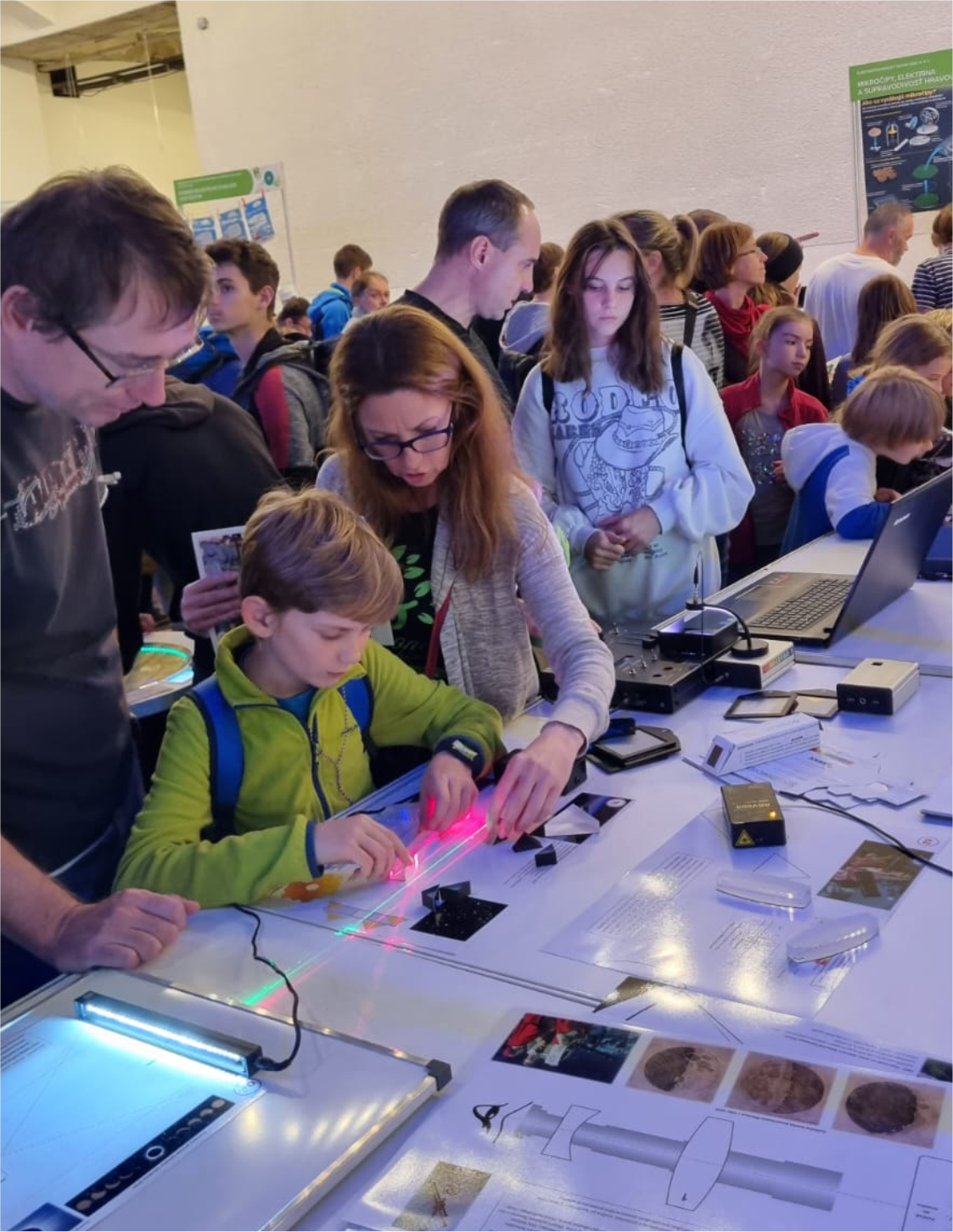 Aj tento rok sme sa zúčastnili aj my, KVANT. Myslíme si, že náš stánok splnil to, čo mal – zabavil deti aj dospelých prostredníctvom interaktívnych postrehových exponátov, ukázal, ako veci fungujú, vysvetlil niektoré základné fyzikálne princípy jednoduchým a pútavým spôsobom pomocou učebných pomôcok ako GON, SPECTRA, SPECTRAL PLUS a ASTRO LASER SET.