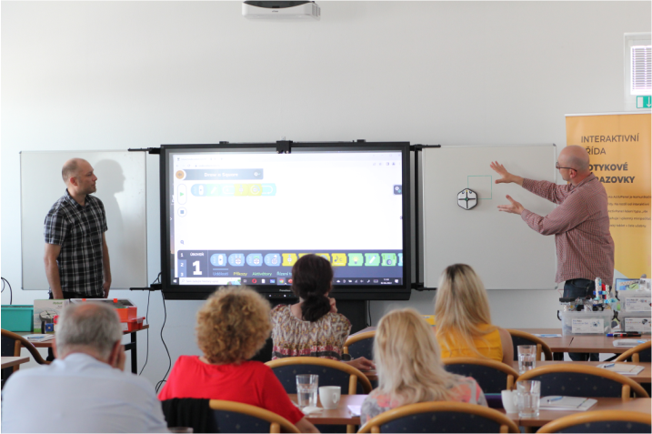 K organizácii takéhoto semináru nás inšpirovali kolegovia z Českej republiky, náš obchodný partner Profimedia, ktorí robia turné po celej ČR a prezentujú ich projekt AKTIVNÍ TŘÍDA – produkty rozvíjajúce digitálne zručnosti už od prvého stupňa ZŠ. Prijali pozvanie urobiť prezentáciu aj pre našich učiteľov na Slovensku a doplnili sme ich s robotickými programovacími sadami ArTec.